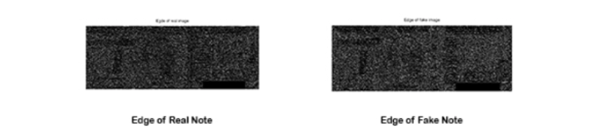 In this case the difference comes out to be 52.71%. This difference is just the average difference in all the pixel intensities. The differences can be seen in the above images where the most basic difference noticeable is the absence of watermarks in the fake notes.