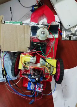 - As soon as it detects an obstacle, it stops itself at a distance of 20 cms.